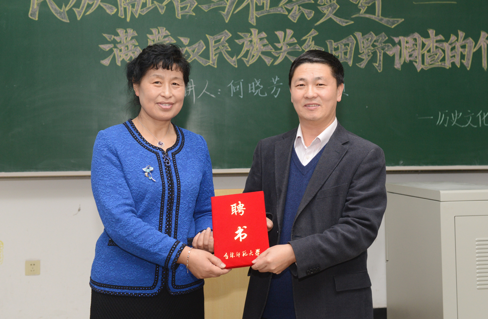 11月24日下午,bat365在田家炳教育书院10210教室举行兼职教授聘任仪式,聘任何晓芳研究员为bat365兼职教授。校长杨景海出席聘任仪式并为何晓芳颁发了聘书。历史文化学院负责人及部分教师参加了聘任仪式。