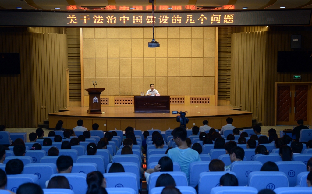 聘任仪式结束后,韩秀桃在图书馆报告厅为全校师生做了一场题为《关于法治中国建设的几个问题》的学术报告。报告中阐述了认识法治中国建设的三个维度,理解法治中国建设的四个视角,把握法治中国建设的五个关系。韩秀桃在报告中结合自己在司法领域的工作经历,深入浅出的剖析了中国当今的司法现状和特色司法体制,整场报告幽默诙谐,深受师生的好评。