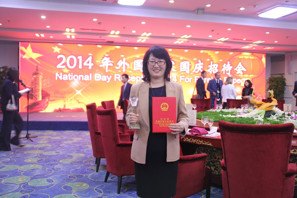金佳律女士荣获2014年度吉林省“优秀外国专家”荣誉称号