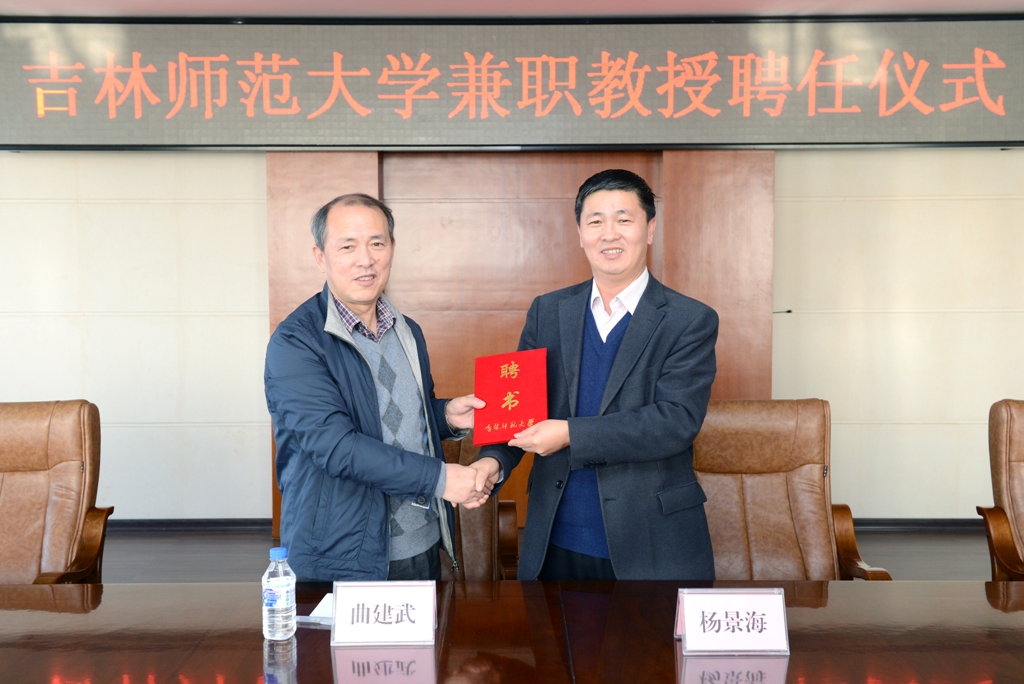 11月21日,学校在第一教学楼八楼会议室举行兼职教授聘任仪式,聘任二级教授、博士生导师、大连海事大学曲建武教授为bat365兼职教授。校长杨景海、校党委副书记高林波出席聘任仪式。杨景海致欢迎辞并为曲建武教授颁发聘书。高林波主持聘任仪式。学生工作部(处)负责人及部分学院党总支副书记、学工办主任参加了聘任仪式。