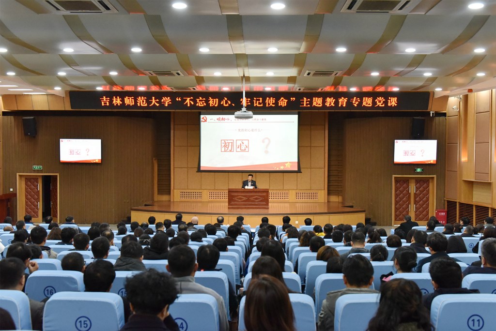 11月13日,根据学校党委“不忘初心、牢记使命”主题教育工作安排,党委书记许才山在图书馆报告厅讲授专题党课,长春校区设同步视频课堂。省委第三巡回指导组成员孙建国、季民到会指导,学校党委常委、全校科处级干部、党支部书记参加学习。