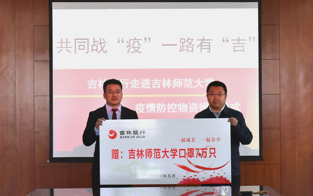 5月27日,吉林银行四平分行党委书记、行长马强一行向学校捐赠7万只医用口罩,捐赠仪式在第一教学楼八楼会议室举行。校党委书记许才山,党委常委、副校长曲殿彬、车广波出席会议;吉林银行四平分行副行长齐雷、公司部总经理解丽娟、海丰支行行长李艳平及学校相关部门负责人参加仪式。曲殿彬主持仪式。