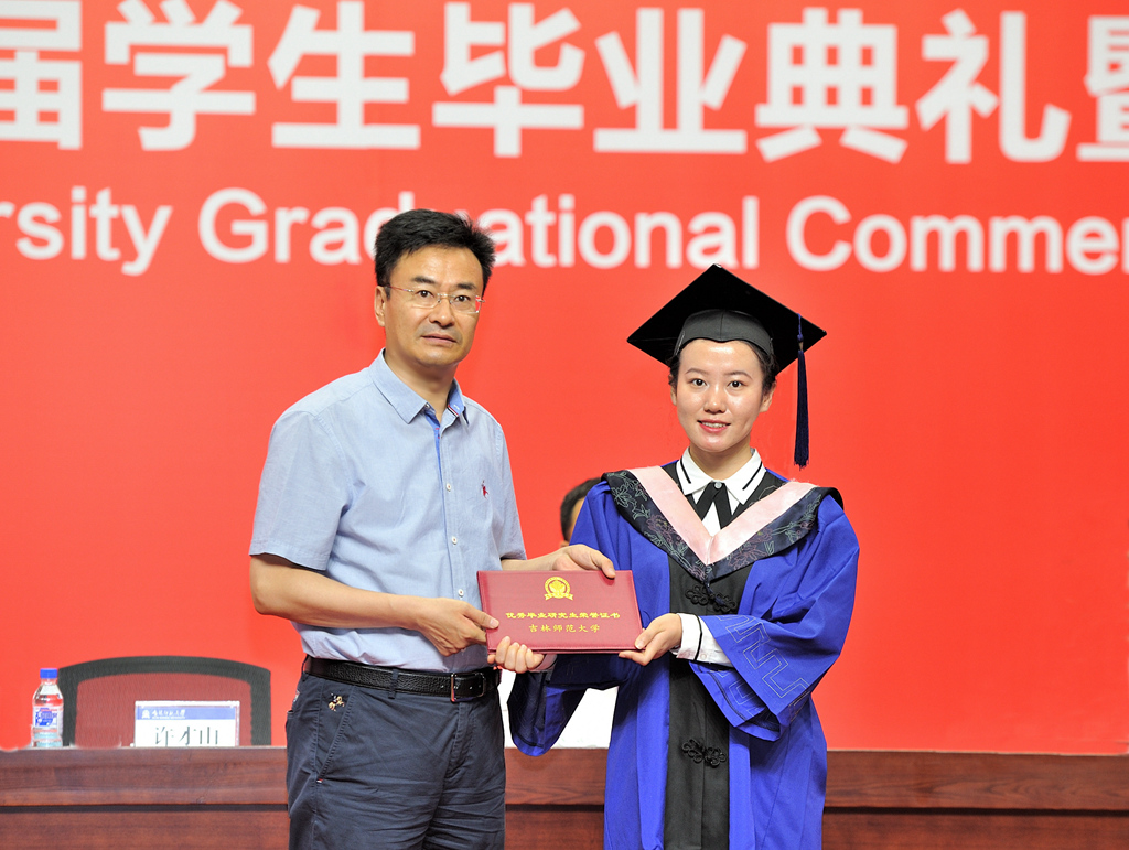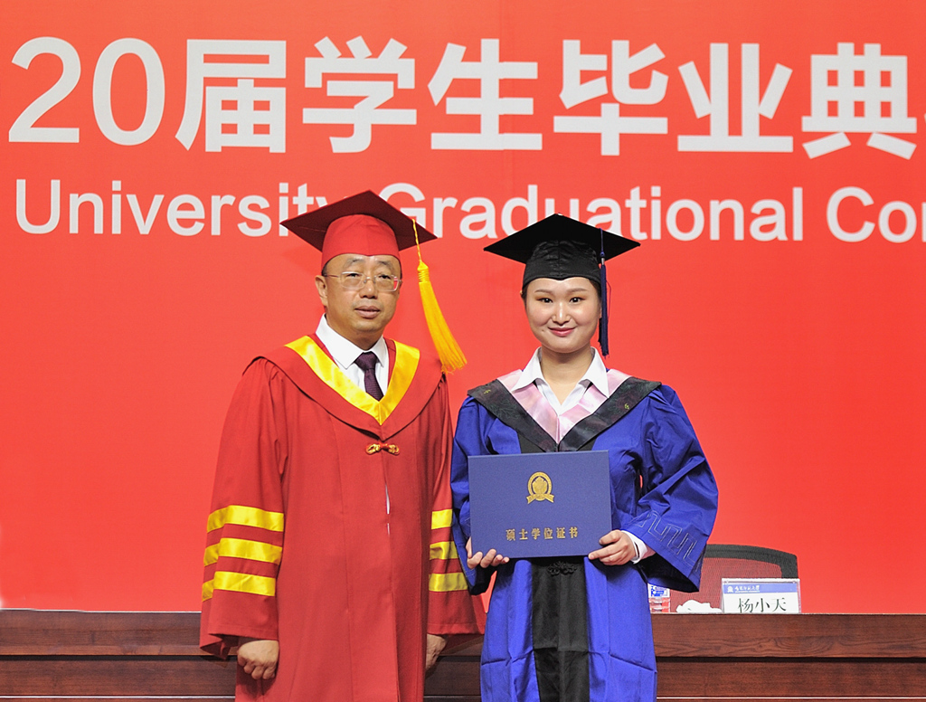 毕业典礼上,新闻与传播学院庞裕同学代表2020届本科毕业生发言;外国语学院周一娜同学代表2020届研究生毕业生发言;旅游与地理科学学院石雨禾同学代表全体在校生发言;美术学院陈思博士代表全体教师发言。