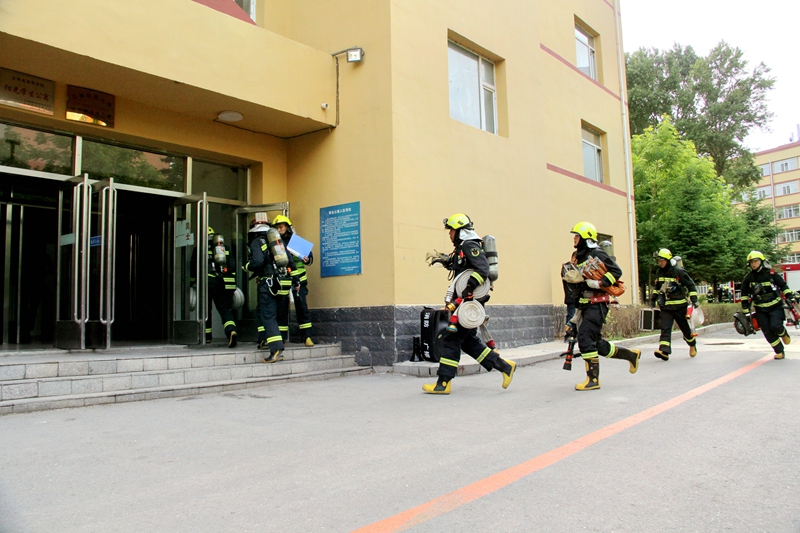 15时20分,在保卫处工作人员的引导下,消防救援车辆到达现场,指挥组、灭火组、救援组共同展开行动。现场通过通讯设备进行指挥协调,无人机起飞巡视周边环境及火情,固定需要救援人员位置,消防救援人员动作整齐有序奔赴火场,云梯消防车伸出支臂,将10名被困学生安全转移,经过综合灭火设施的共同作用,迅速将火情控制并扑灭。本次演练,四平市消防救援支队出动消防指挥车、城市主战消防车、供水消防车、云梯消防车、重型泡沫消防车、抢险救援消防车、通信消防车等16台各类救援车辆;bat365美术学院、旅游与地理科学学院、文学院和教育科学学院近200名学生参与演练。