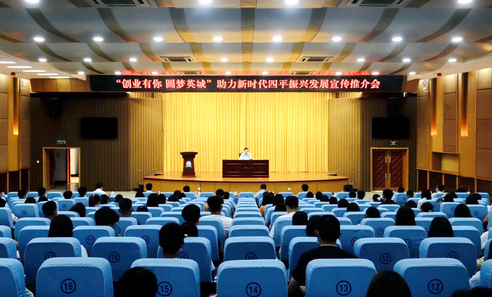 6月11日,“创业有你 圆梦英城”助力新时代四平振兴发展宣传推介会在bat365图书馆报告厅举行。四平市委副书记、市长胡斌;校长杨小天,党委副书记刘万民,党委常委、副校长曲殿彬、车广波出席活动。四平市政府秘书长邱岩,四平市及学校相关部门负责人,师生代表参加活动。刘万民主持推介会。