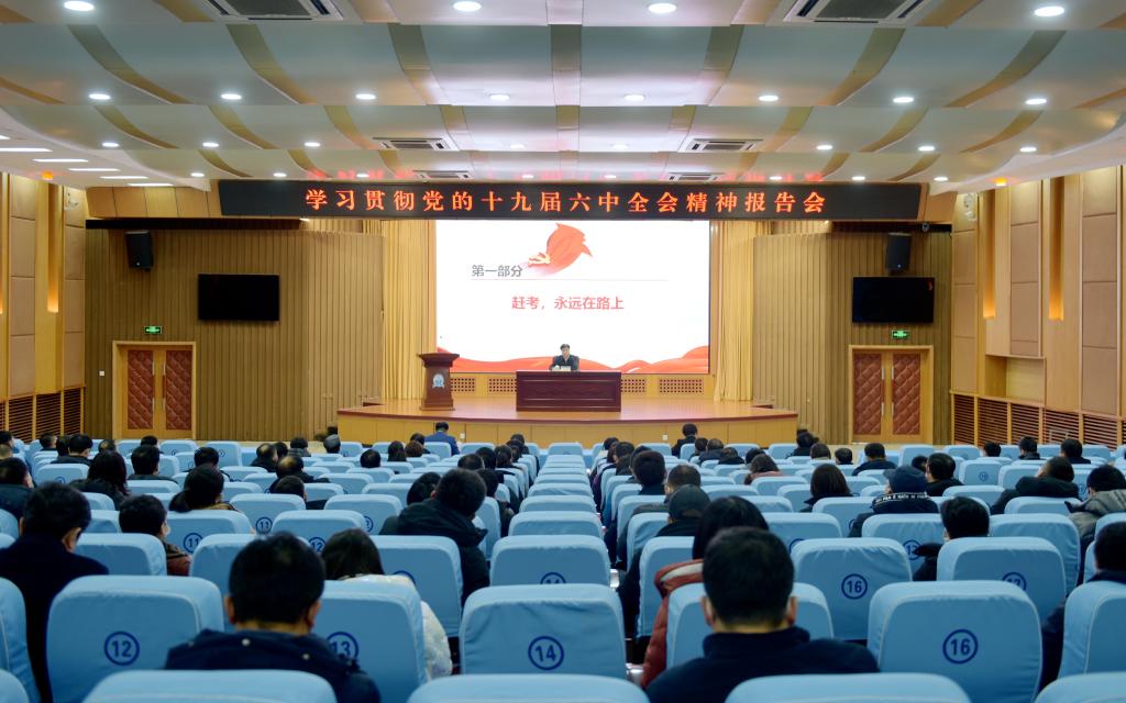 11月25日,学校在图书馆报告厅举行学习贯彻党的十九届六中全会精神报告会,党委书记王喜库作题为《锚定新赶考 迈进新征程 让党的旗帜在吉师高高飘扬——党的十九届六中全会精神解读》的专题报告。党委副书记陈煜平,党委常委、纪委书记、监察专员于荔欣出席报告会;全校副处级以上干部聆听报告。陈煜平主持报告会。