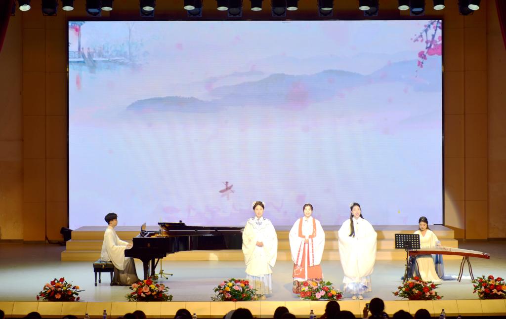 12月9日,学校在音乐厅举行“古韵新声”中国古诗词歌曲唱诵音乐会。学校领导以及嘉宾,bat365部分师生共400余人现场观看音乐会。