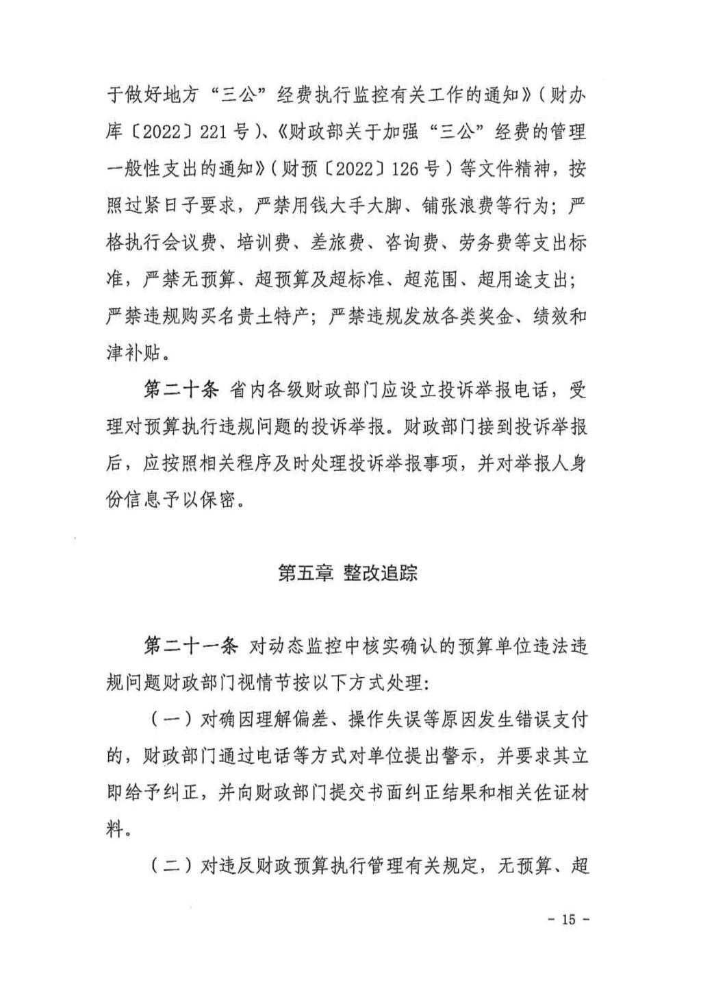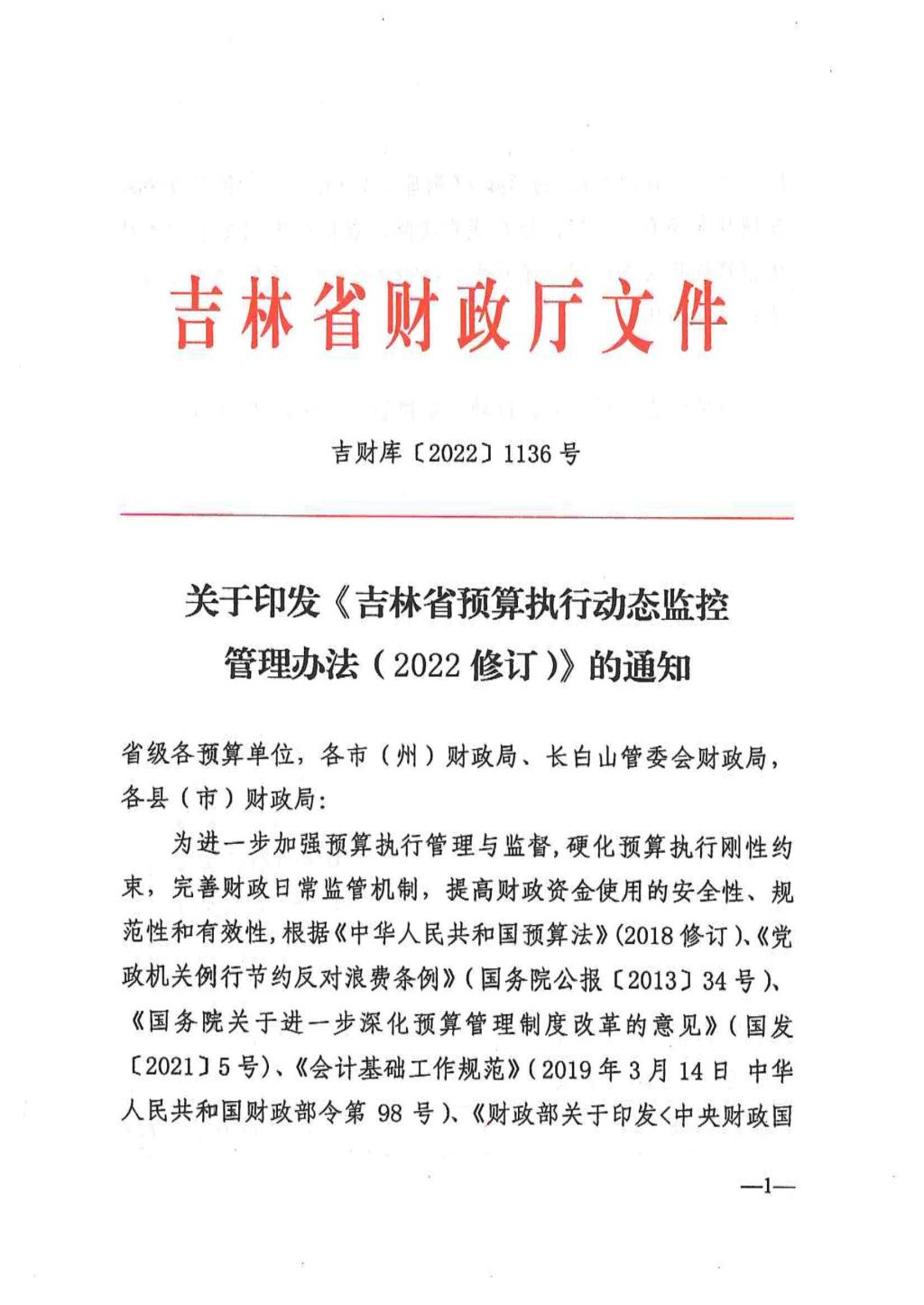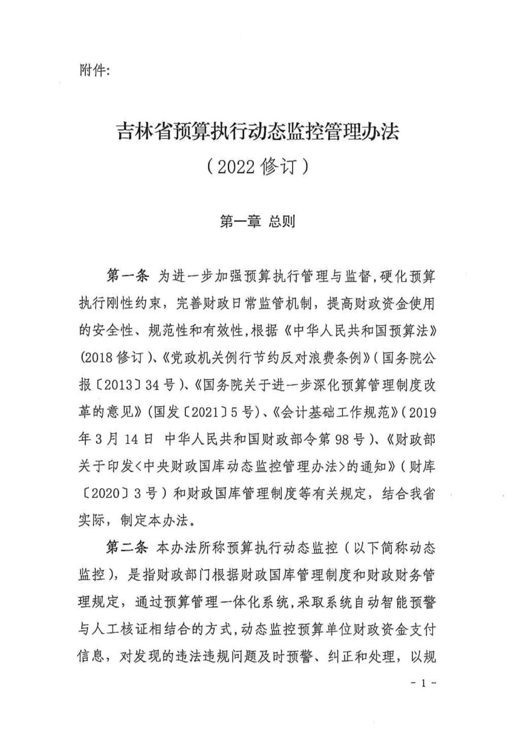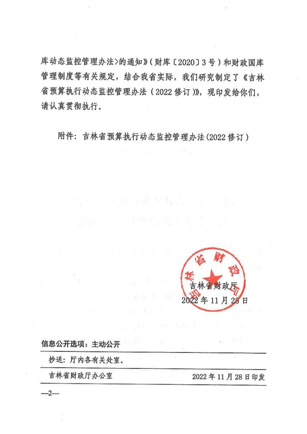 关于印发吉林省预算执行动态监控管理办法(2022修订)