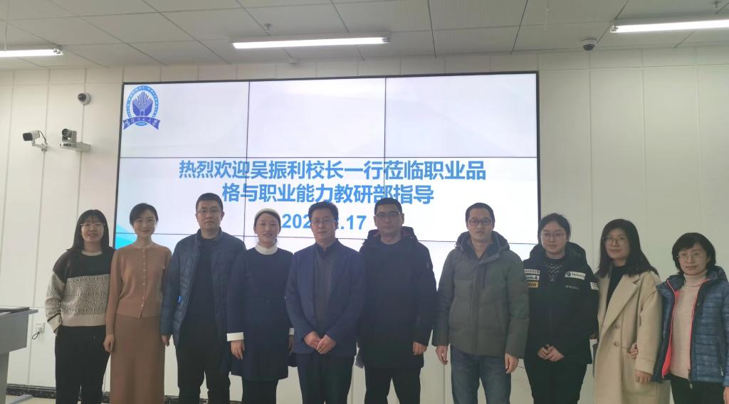 2023年2月17日下午3:30,吴振利副校长、邓宇副部长、孙启隆副处长,莅临职教部宣布任职,走访调研,并在双实大楼远程教学观摩室与职业品格与职业能力教研部全体教师进行亲切座谈。宣布任职会由邓宇副部长主持,会后走访调研由李恒副主任主持。