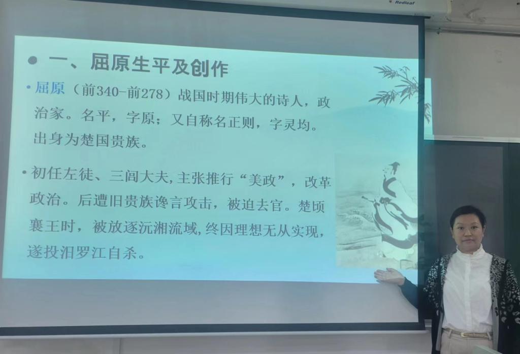 仵宏慧老师分享了题为“胸怀天下:诗词里的家国情怀——从塔子山战斗精神看中华民族铮铮铁骨之传承”教学案例课程,将四平红色革命教育与大学语文课堂教学有机结合,发掘优秀文学作品所蕴涵的内在思想教育、情感熏陶因素,弘扬爱国主义精神,增强民族自豪感。同时,结合该课程教学案例说课讲解。
