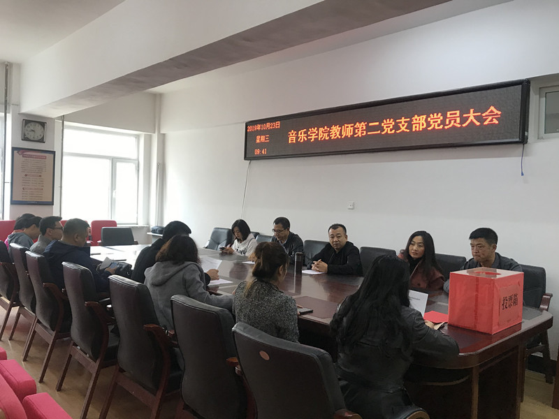 2019年10月23日,音乐学院教师第一党支部委员会和教师第二党支部委员会,按照严格组织程序分别召开党员大会,到会党员数超过应到会党员数的五分之四,采用无记名投票方式和差额选举办法,对支委会进行了改选。院党总支书记陈明宏到教师第二党支部党员大会现场监督指导改选工作,院长胡晓伟到教师第一党支部党员大会现场监督指导改选工作。