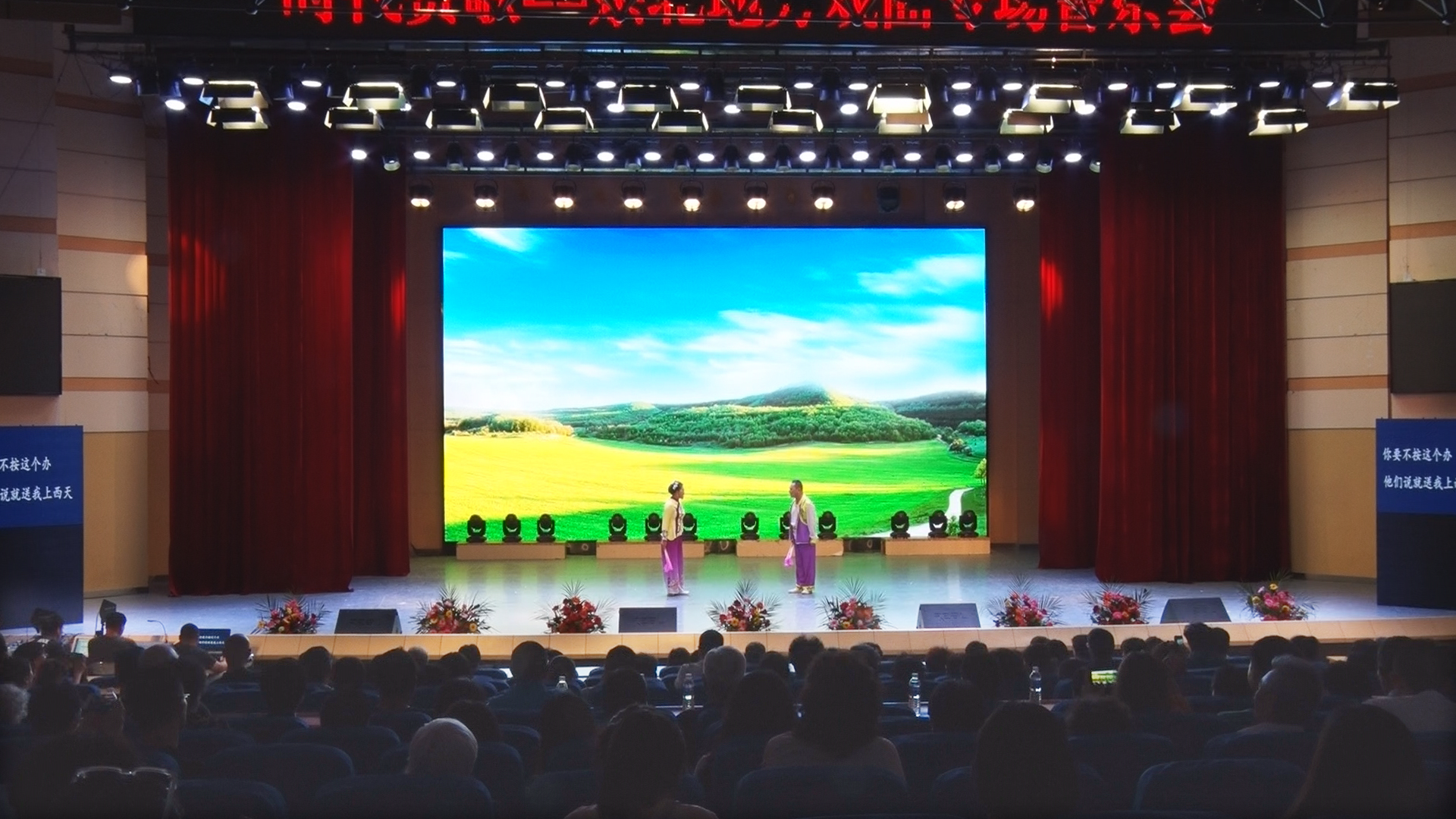 为献礼新中国七十华诞,展示东北地方戏曲课教学成果,6月19日晚,音乐学院在音乐厅举办“时代赞歌”——东北地方戏曲专场音乐会,校党委副书记、校长杨景海,党委常委、副校长李海波、车广波,院党总支书记陈明宏、院长胡晓伟,副院长任会平、颜铁军、副书记楚学娟和学校各单位领导、老师及我院师生500余人一起欣赏了音乐会。