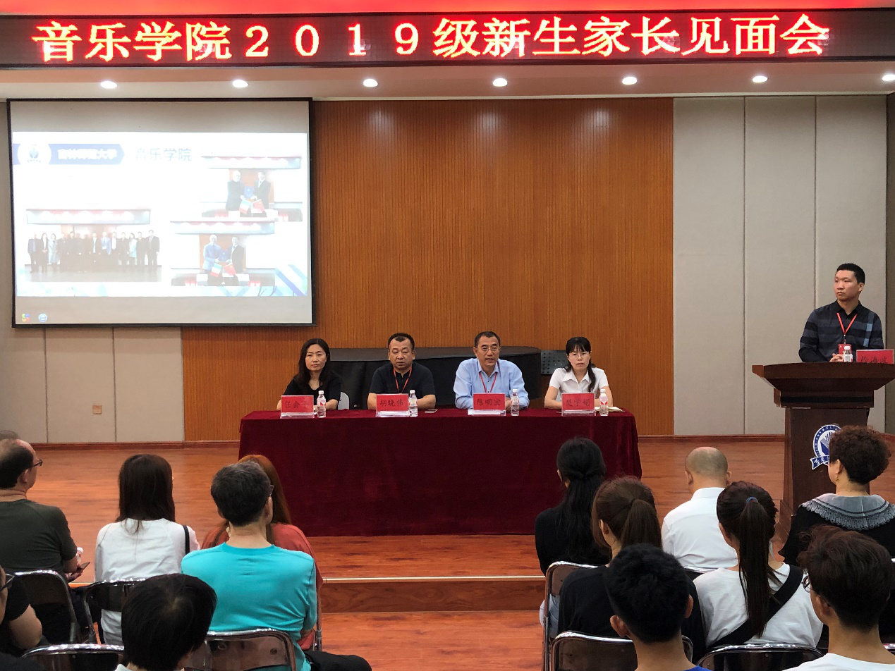 为加强家校共育,强化与家长的良好沟通,帮助新生尽早适应大学生活,我院于8月31日下午在一楼8106音乐教室举办了音乐学院2019级新生家长见面会。院党总支书记陈明宏、院长胡晓伟、副院长任会平、党总支副书记楚学娟出席,学工办主任兼团委书记徐海波主持见面会。
