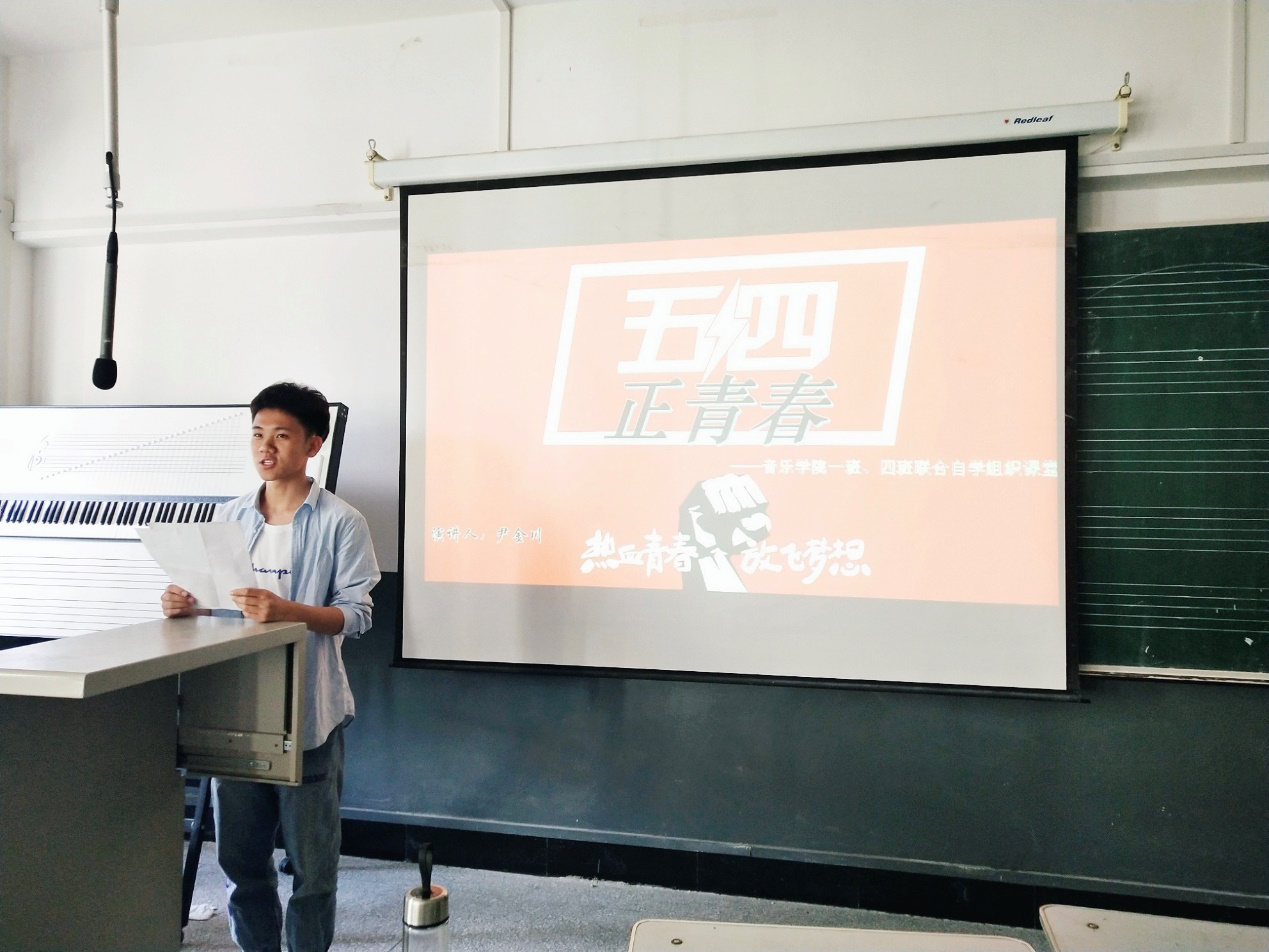 为弘扬“五四”爱国精神,继承先辈光荣传统,4月29日晚,音乐学院大学生自学组织在8210教室举办了“传承五四精神,奉献热血青春”——纪念“五四”运动100周年学习活动,2018级音乐学专业、音乐表演专业全体学生参加了活动。