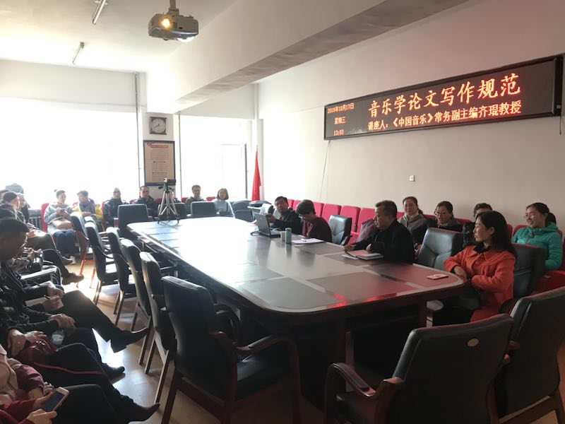 2018年10月17日下午,中国音乐学院音乐研究所所长、《中国音乐》常务副主编、博士生导师齐琨教授,应邀来我院作了题为《音乐学论文写作规范》的学术讲座。院长胡晓伟教授主持,副院长任会平、颜铁军和我院专业教师及研究生同学聆听了讲座。