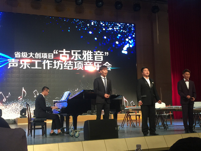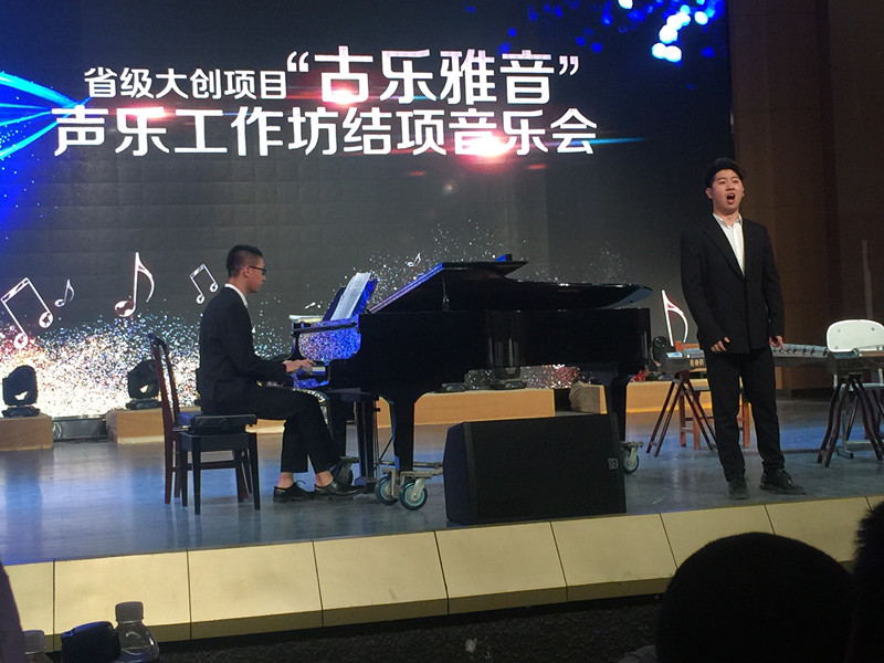 教育厅主管的“古乐雅音”声乐工作坊为我院的省级大学生创新创业项目,2017年6月获批,项目负责人为我院2016级音乐学专业李战美、张雨生同学,指导教师为王欢老师。“古乐雅音”声乐工作坊旨在推广和普及科学的声乐发声方法,秉承科学、传承与创新的精神,提高全民声乐艺术水平,促进声乐艺术的传承。