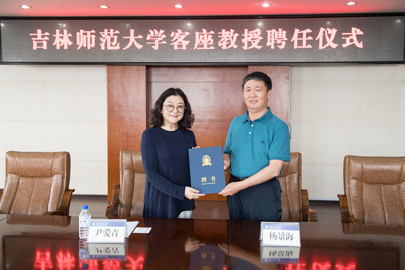 2018年6月6日,学校在第一教学楼八楼会议室举行客座教授聘任仪式,聘任教育部艺术教育委员会常务委员、东北师范大学博士生导师、二级教授、原音乐学院院长尹爱青博士为客座教授。校党委书记许才山教授,校党委副书记、校长杨景海教授出席聘任仪式,杨景海为尹爱青教授颁发聘书并致辞,尹爱青教授作了讲话。