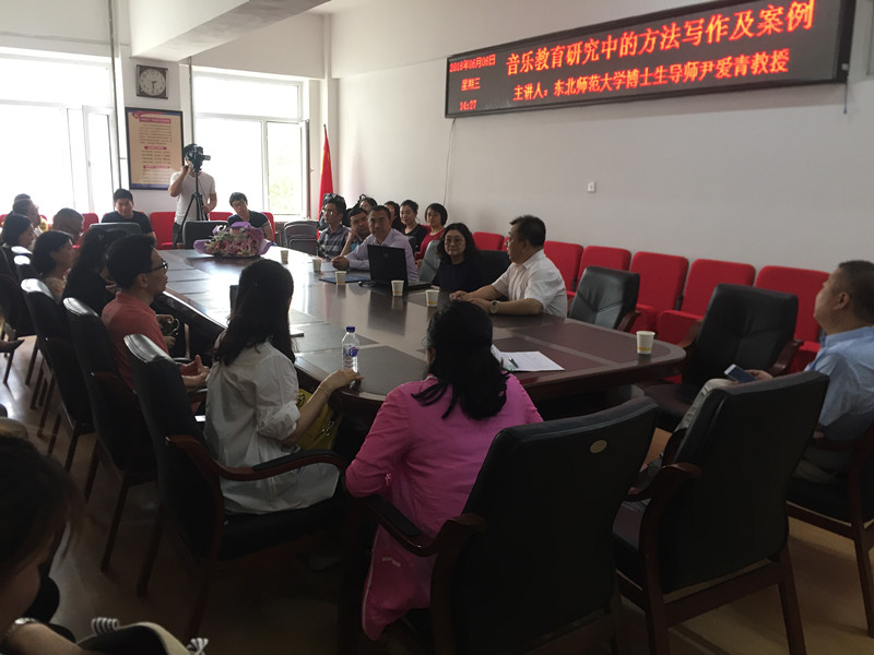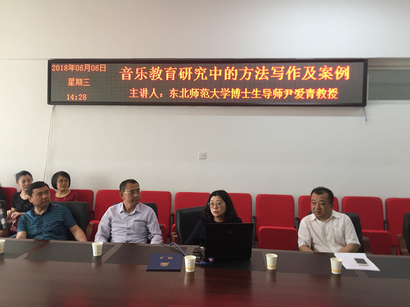 2018年6月6日下午,东北师范大学博士生导师、二级教授尹爱青博士,应邀在我院3楼会议室做了题为《音乐教育研究中的方法写作及案例》的学术讲座。院长胡晓伟教授主持讲座,院党总支书记陈明宏、副院长任会平、颜铁军和全院专任教师及在校研究生听取了讲座。