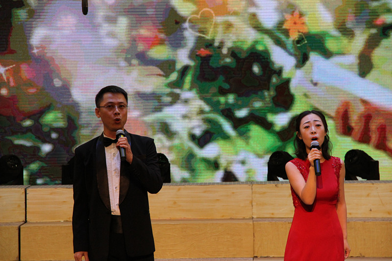 表彰大会后,由郭明显老师指导的我院合唱团再次以中俄双语唱响了“航空飞镖”国际军事比赛文艺演出中的歌曲《神圣的战争》、《莫斯科郊外的晚上》、《喀秋莎》、《红莓花儿开》、《并肩战斗》、《友谊地久天长》;民乐二胡合奏《赛马》让人仿佛置身于大草原的万马奔腾之中,器乐节目《战台风》和《哈尔的移动城堡》展现了古筝的磅礴气势和弦乐重奏的高雅清新;葛丹老师演唱的《美丽家园》大气奔放,杨庆斌、吕梦莹老师演唱的《追寻》唱出了同学们的心声,石有权、刘奇龙同学演唱的新版《水手》富有新意,点燃了现场观众的热情。作为今年bat365各学院的第一台迎新晚会,内容精彩纷呈,专业水准高,为新生作了方向性的示范与引领。
