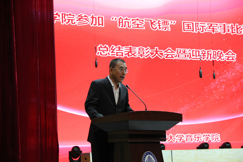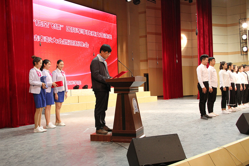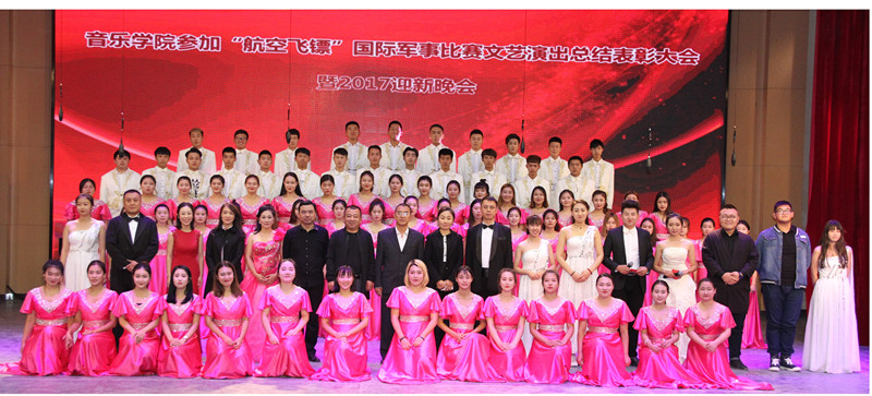 暑假期间,音乐学院师生代表学校参加了由四平市委、市政府主办的《和平与梦想——庆祝建军90周年暨“航空飞镖”国际军事比赛文艺演出》,取得圆满成功,中央电视台新闻频道给予报道,为“航空飞镖”国际军事比赛和文艺演出增添了光彩,充分展现了吉林师大学子的精神风貌,学校决定对221名参演学生给予表彰。2017年9月27日晚,我院在音乐厅召开参加“航空飞镖”国际军事比赛文艺演出总结表彰大会暨2017迎新晚会,学校党委副书记刘万民、学生工作部部长张洪峰出席,学院领导班子成员和部分教师、全体学生参加大会。