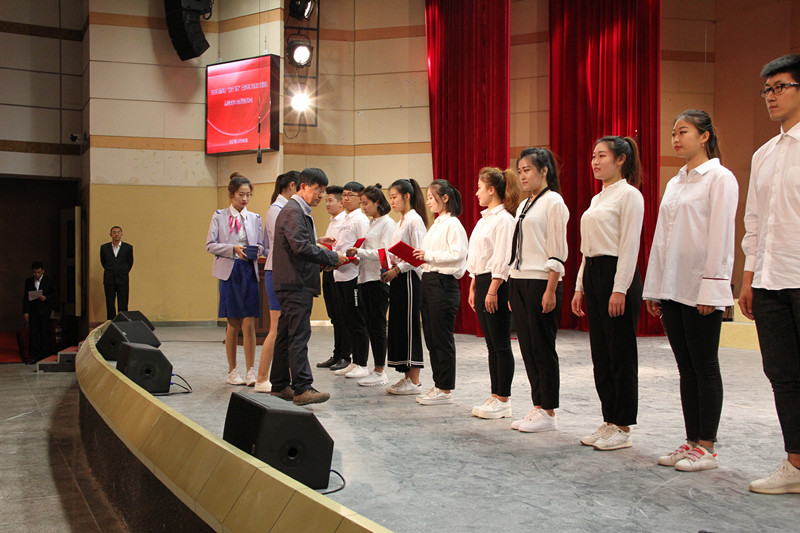 总结表彰大会首先通过LED大屏幕播放“航空飞镖”国际军事比赛文艺演出现场录像和中央电视台新闻报道。校党委副书记刘万民亲自宣读学校颁发的奖励证书,并为获奖学生代表颁发证书和“航空飞镖—2017国际军事比赛”纪念章。一张张鲜红的证书,一枚枚闪光的纪念章,书写了参演学生两个月的刻苦排练和不分昼夜的勤奋努力,激励每位学子再接再厉,在艺术道路上奋力前行!