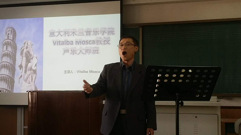 大师课堂上,有四位声乐教师进行了演唱,Vitalba Mosca教授针对每名教师的意大利语言、音乐风格以及情感处理等内容进行了讲解和指导。大家非常珍惜如此难得的机会,“大师课”扩展了自身的艺术视野,提升了声乐教师的演唱技巧及声乐教学能力。