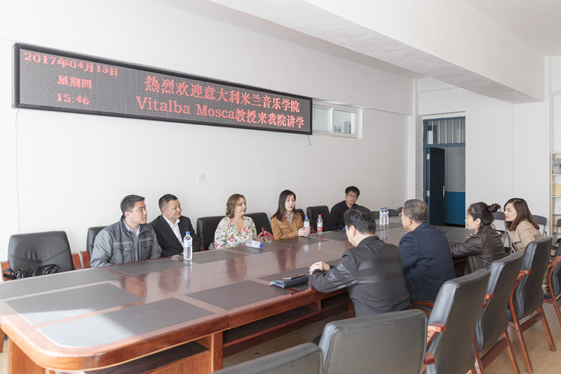 4月13日下午,应学校国际交流合作处邀请,意大利米兰音乐学院Vitalba Mosca教授声乐大师课在我院8407教室如期举行。课前,我院在三楼会议室举行了简短的欢迎仪式,院党总支书记陈明宏致欢迎辞,Vitalba Mosca教授作了热情洋溢的讲话,国际交流合作处副处长杜瑞康主持仪式,副院长任会平、颜铁军和音乐表演系主任臧婉及部分教师参加了欢迎仪式。