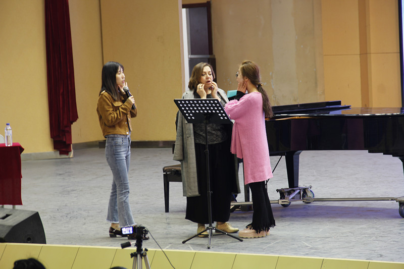 在大师班讲座上,有9名学生进行了演唱,Vitalba Mosca教授针对每名学生的意大利语言、情感,特别是对歌曲的细致化处理等都作了精细指导。同时,通过Vitalba Mosca教授的精彩讲解和示范演唱,让师生在短时间内领会到意大利歌曲、咏叹调的要领与精髓,提升个人音乐表达及演唱能力。
