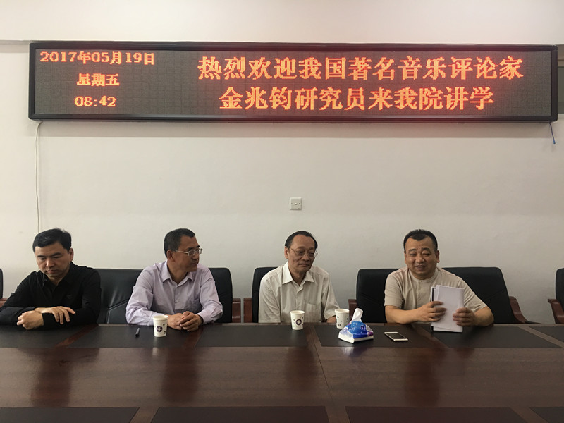 5月19日上午,学校在第一教学楼八楼会议室举行了客座教授聘任仪式,聘任著名音乐评论家、中国音乐家协会理事、中国流行音乐协会会长、《人民音乐》主编金兆钧研究员为bat365客座教授。校长杨景海教授在聘任仪式上讲话并为金兆钧教授颁发聘书,副校长李海波主持聘任仪式。学校党委宣传部部长徐焕文、人事处处长徐占林、科研处处长陈智文和我院院长胡晓伟、党总支书记陈明宏、副院长颜铁军、党总支副书记闫薇等领导及部分教师参加了聘任仪式。