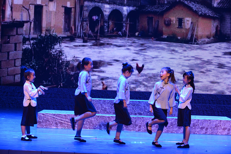 第一乐章《华夏惊梦》由五个片段构成。片头诗歌通过“丝绸之路”“万里长城”“唐诗宋词”等典型历史文化元素梳理了中华五千年文明史,洋溢着民族自豪感和自信心。曹鹤老师以其浑厚的声音和雄壮的气势演唱了歌曲《黄河颂》,讴歌中华民族文化的博大精深和中华民族的不屈品格。接着通过道白的形式简述了晚清历史,选取了民国时期的童谣与歌曲《西风的话》、《送别》作为短暂和平历史的描绘。三首作品以叙事的形式贯穿在一起,朱临吉、刘畅老师栩栩如生的表演把人们带入到百年前的中国,该章在吉林师大附属小学葛书艺、颜聆因、刘知鱼等小同学的表演以及岳婷老师的指导下协作完成。