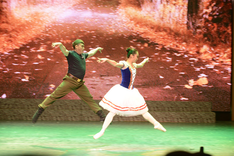 第四乐章《胜利凯歌》通过脍炙人口的俄罗斯歌曲《小路》,揭示全世界爱好和平的人们在反法西斯战争中的选择,节目以芭蕾舞的艺术形式表现了姑娘与即将出征的爱人依依惜别之情,作品由张宇、刘璐编导、表演,高超的舞蹈技巧引起了台下的阵阵掌声。舞蹈《走向胜利》运用大鼓、唢呐、绸带等道具,表现了人民英勇斗争并取得胜利的欢庆场面,舞蹈热烈欢快,激情欢腾。合唱《祖国颂》表现了新中国日新月异的变化,表达了人民对伟大祖国无比热爱之情,歌曲由金镇国和曹杨老师领唱,美妙的歌声环绕在音乐厅的每一处。最后,大合唱《歌唱祖国》添加了舞蹈靓丽的装扮,并在指挥的引导下形成台上演员与台下观众共同演唱的热烈场面,将整场演出推向了高潮。