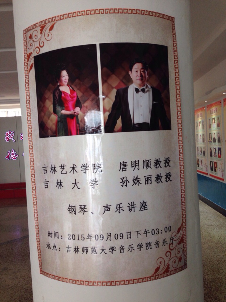 应我院邀请,著名女中音歌唱家、吉林大学声乐教授孙姝丽女士和吉林艺术学院钢琴系主任唐明顺教授,9月9日下午在音乐厅进行声乐、钢琴专场学术讲座。讲座由院长胡晓伟教授主持。