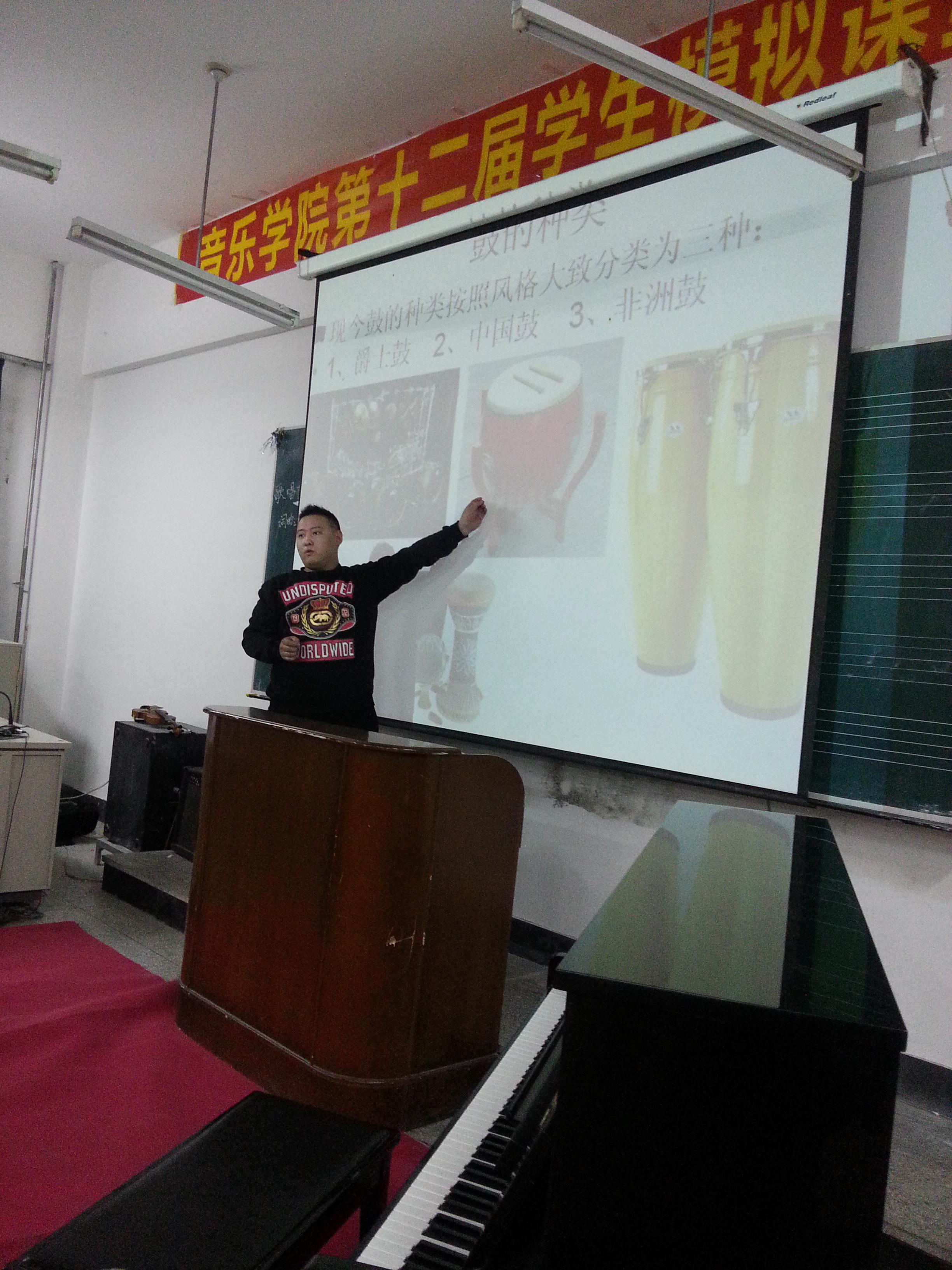 为提高师范生讲课技能,2013年11月6日晚六时,我院在8106教室举办了“2013年音乐学院音乐学专业第十二届学生模拟课堂教学讲课大赛”。该比赛分初赛、决赛两个阶段进行,在初赛阶段,经过激烈的角逐,选出了最具实力的十名选手进入了决赛。在本次大赛中张颖书记和任会平副院长分别做了点评和总结,他们对比赛取得的成绩给予了充分的肯定,同时也指出了不足。