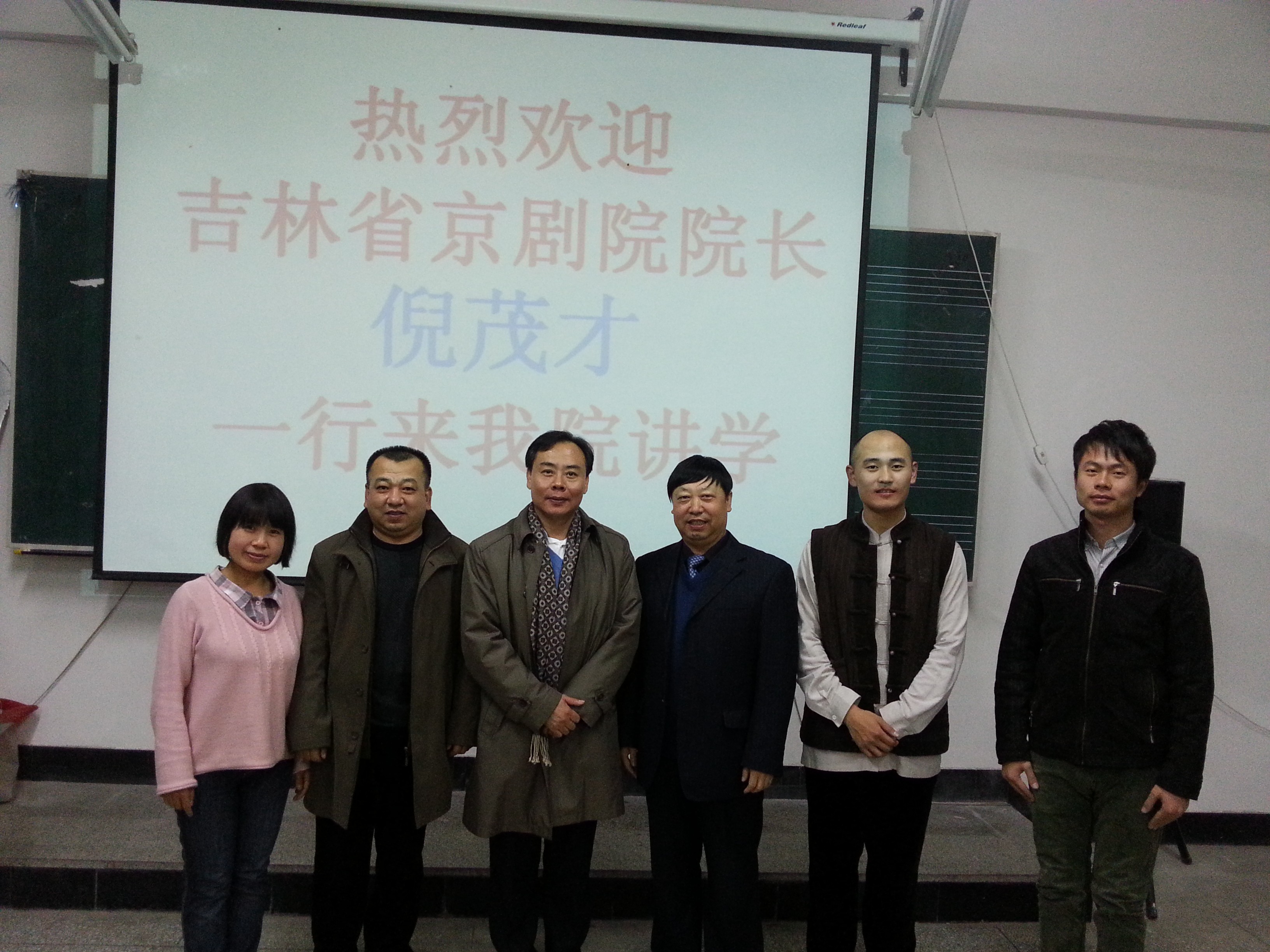 2013年11月13日,我院邀请吉林省戏曲剧院党委书记兼院长倪茂才和青年京剧演员吴迪为师生作了题为《德育京剧》的学术报告。倪茂才先生是国家一级演员,京剧“高派”传人,“梅花奖”、上海“白玉兰”主角榜首奖获得者,享受国务院政府特殊津贴,文化部优秀专家,中宣部全国宣传文化系统“四个一批”人才奖,吉林省政协委员,中国戏曲家协会理事,吉林省文联副主席。