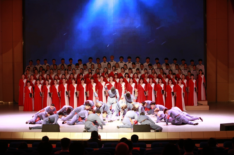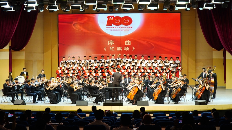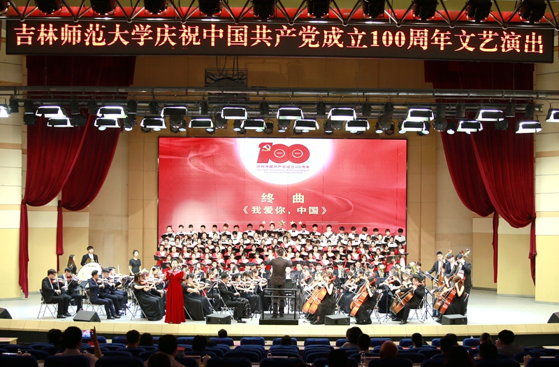 最后,演出在激越高昂的交响合唱《我爱你,中国》中圆满落下帷幕。整场演出以艺术形式展现了中国共产党奋斗、奋发、奋进的光辉形象,以及中国共产党团结带领中国人民艰苦奋斗的辉煌历程,充分展示了吉师人积极向上的精神风貌和强烈的爱党爱国深情。