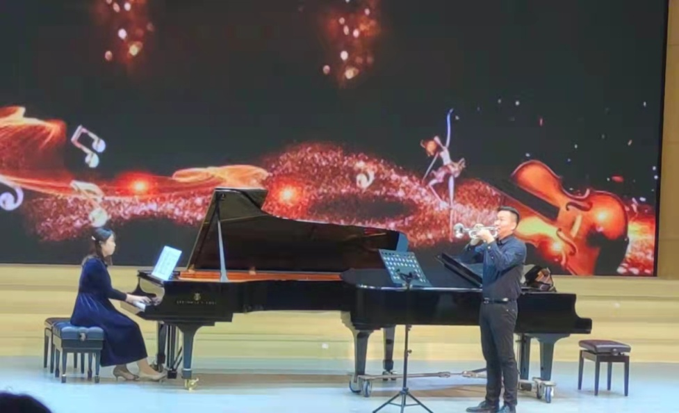 在党的十九届六中全会即将召开之际,为丰富大学校园文化生活,2021年11月3日晚,音乐学院在学校音乐厅举办了由专业教师演奏的器乐专场音乐会。音乐学院党总支书记陈明宏、院长胡晓伟、副书记楚学娟、学院教学工作负责人杨庆斌和学校部分单位领导、教师、学生共同欣赏了音乐会。