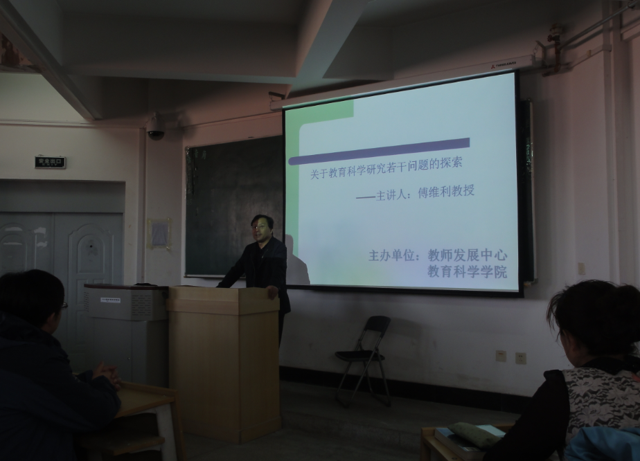 辽宁师范大学教育学院院长,博士生导师,傅维利教授在田家炳书院10613做题为“关于教育科学研究若干问题的探索”的学术报告。教师发展中心主任刘纯龙、教育科学学院院长吴振利出席了此次活动。学校课程与教学论专业教师、教育科学学院教师及全体研究生。