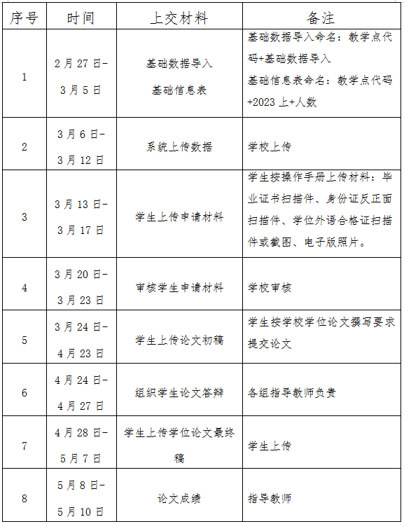2.论文格式严格按学校要求撰写,重复率低于30%,超过30%的将不能提交论文,论文命名:教学点代码+论文题目+学生姓名,论文封面时间统一填写2023年5月7日;