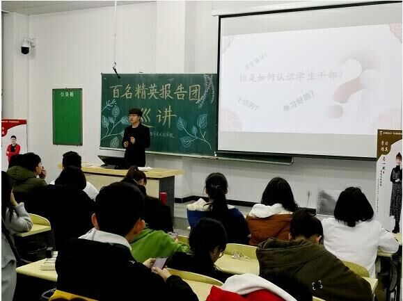 9月8日晚,历史文化学院和计算机学院于11113教室联合举办了"百名精英报告团"巡回报告。两院18级学生参加。