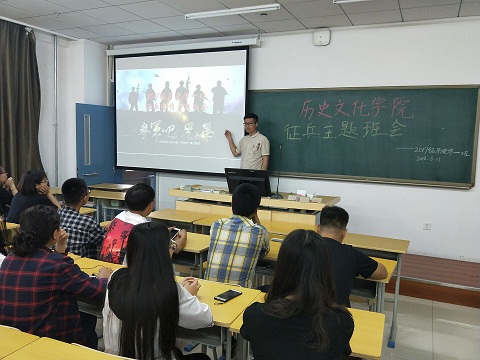 此系列活动主要以下发宣传手册,板报,班会等形式进行。大学生征兵入伍宣传手册在相关学生干部的组织下统一下发至全院学生手中,并进行了简要解读和重点强调;板报由学院学生会宣传部承办,进行了精心设计,画面色彩明丽,并搭配“参军光荣,保卫家国”等宣传语,使军人英明神武的光荣形象更加深入人心,展现出强烈的号召力;2017级学生主要以班会形式进行宣传,四个班级分别于6月10日至11日召开相关主题班会,以《2018年入伍政策须知》和《bat365平台官网大学生退役士兵复学后相关规定》两个文件为重点内容,详细介绍了大学生入伍条件及大学生退役复学后的优越待遇,普及征兵政策,传递征兵精神,强化征兵意识。