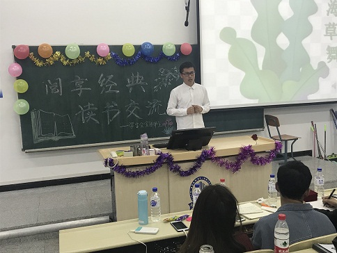为响应学校号召, 加强学术氛围,增加同学们读书的热情。学院于5月10日晚在11113教室举‘阅享经典、读书交流’活动。学生会、社联主要学生干部出席活动。2017级全体新生作为观众参与本次活动。