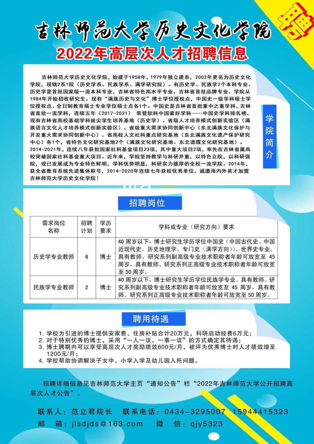 bat365平台官网历史文化学院2022年高层次人才招聘信息