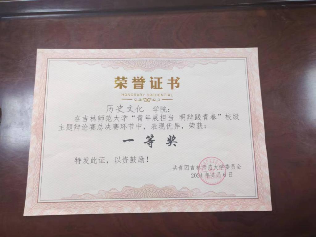 近日,我院辩论队在“青年展担当,明辨践青春”校级主题辩论赛总决赛中,高安昕、刘思雨、张楠、林雨诺四名同学组成的代表队表现优异,荣获一等奖!其中,高安昕同学荣获“最佳辩手”称号。