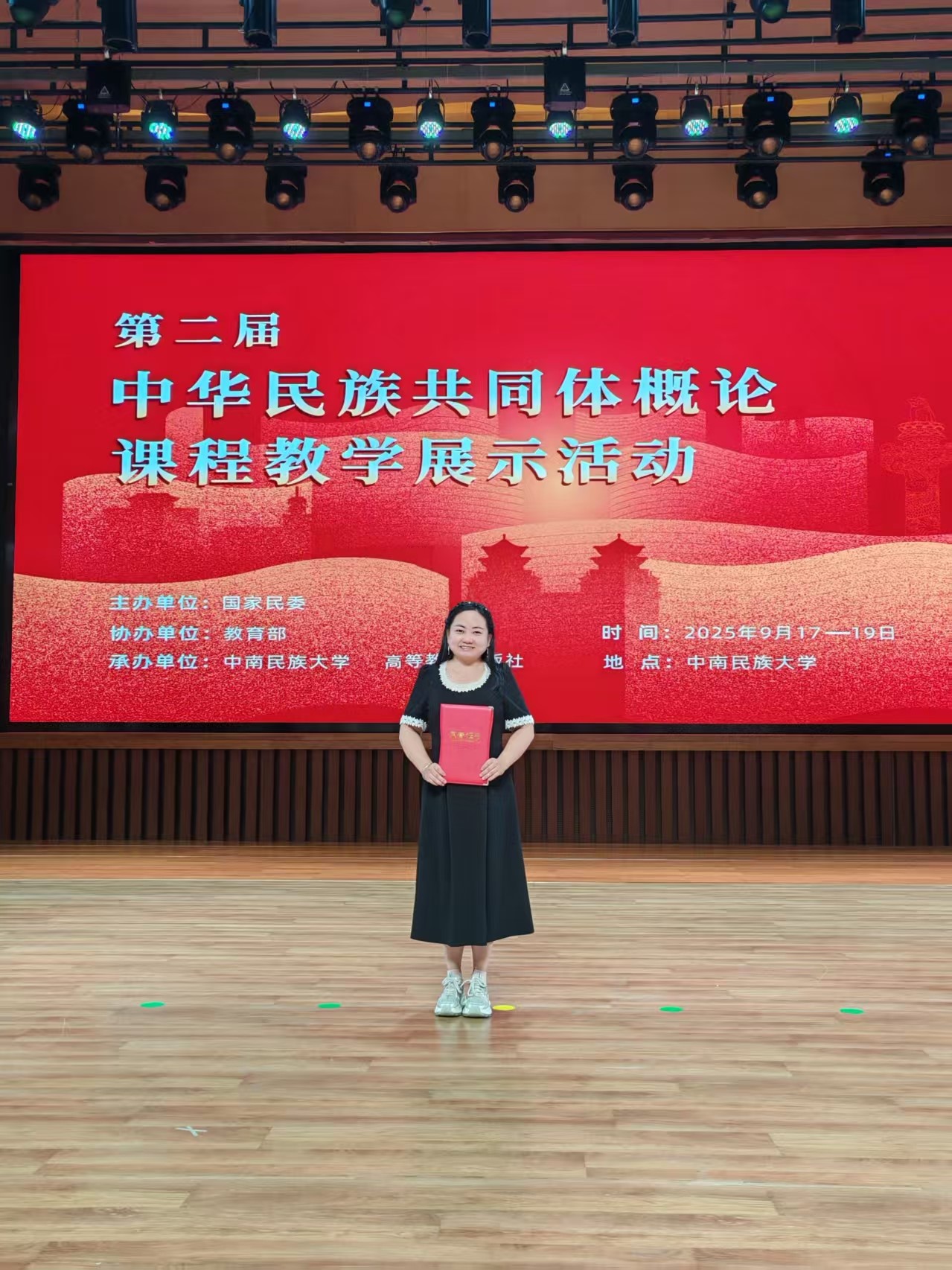 这一奖项,是对王兰老师多年来深耕教学、潜心钻研的最好回馈,更充分展现了我院在铸牢中华民族共同体意识教育教学领域的扎实功底与优秀成果。