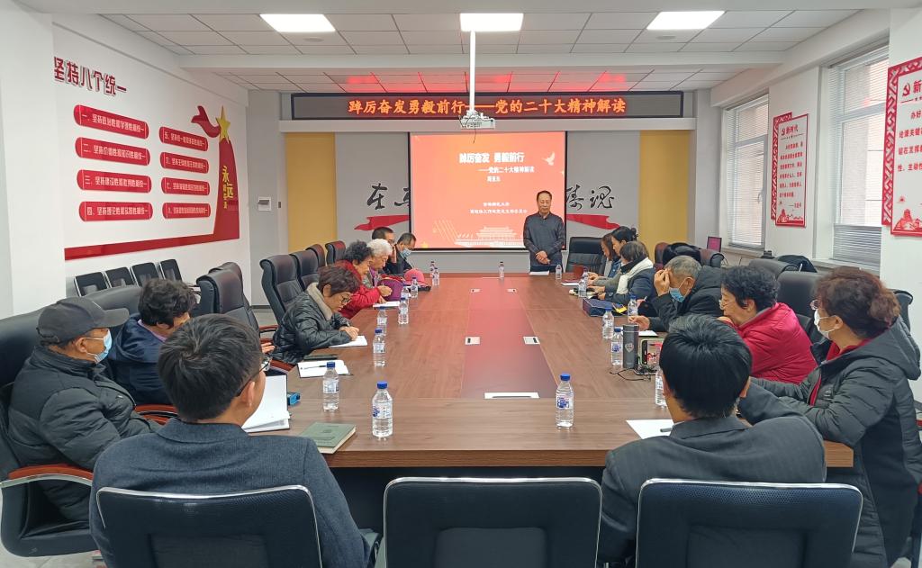 离退休工作处党总支于2023年2月28日组织全体各党支部委员及在职党员召开学习党的二十大报告宣讲会,会议邀请马克思主义学院关工委常务副主任、校宣讲团成员周亚东教授,做了主题为《踔厉奋发 勇毅前行--党的二十大精神解读》的专题报告。