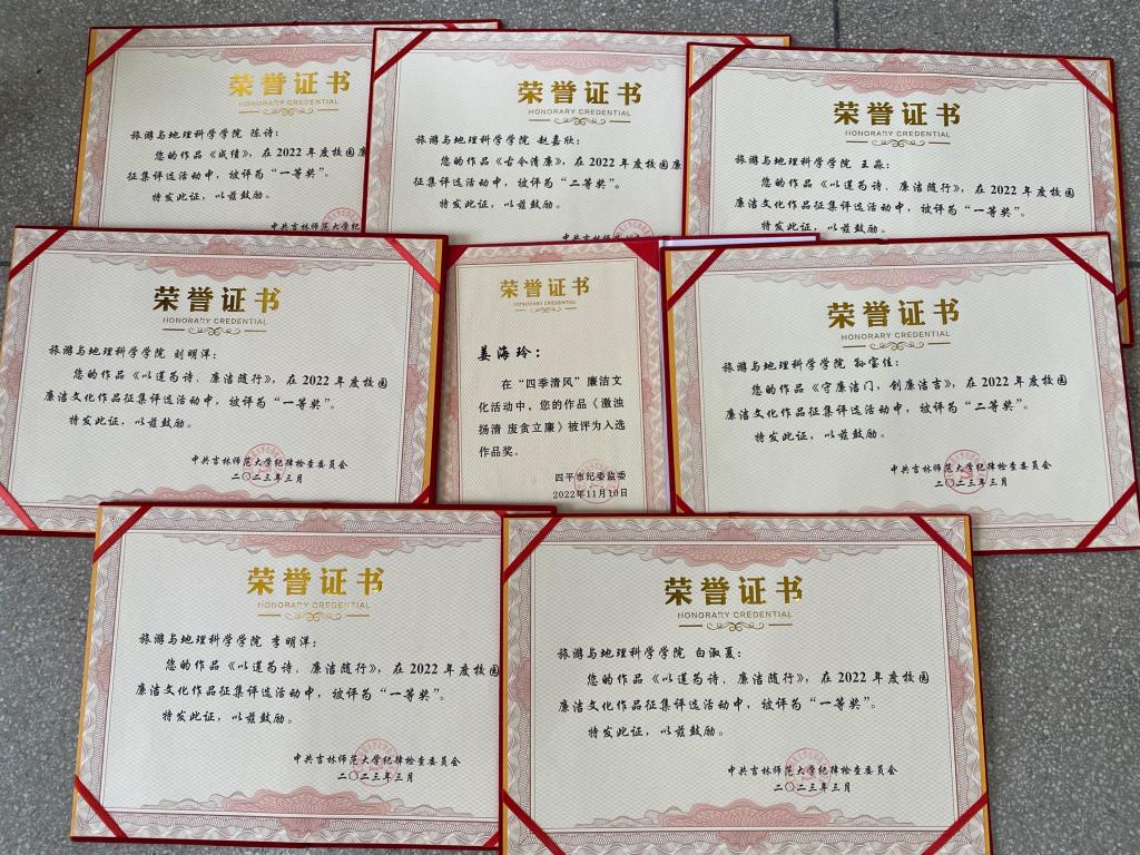 为深入贯彻全面从严治党战略方针,认真落实中共中央《关于加强新时代廉洁文化建设的意见》精神,坚持培树师生廉洁自律思想理念,持续推进学校党风廉政建设,根据吉林省纪委“喜迎二十大·廉洁吉林杯”首届吉林省廉洁文化作品网络征集评比大赛的要求,2022年6月至8月,学校纪委在全校开展了校园廉洁文化作品征集评选工作。我院党委按照要求,广泛宣传动员,组织师生认真开展创作,及时报送优秀作品。通过个人申报、基层推荐、校内初选、专家评审等环节工作,最终我院党委荣获“优秀组织奖”,我院教师姜海玲创作书法绘画类作品《激浊扬清·废贪立廉》荣获个人“特等奖”,我院学生陈诗创作网络新媒体类作品《成绩》和李明洋、王淼、白淑夏、刘明洋创作摄影类作品《以莲为诗,廉洁随行》荣获个人“一等奖”,孙宝佳创作书法绘画类作品《守廉洁门,创廉洁吉》和赵嘉欣创作书法绘画类作品《古今清廉》荣获个人“二等奖”。