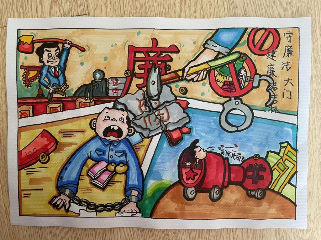 二等奖:孙宝佳同学的作品《守廉洁门,创廉洁吉》