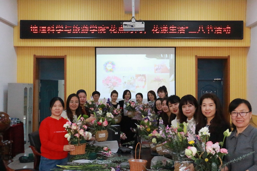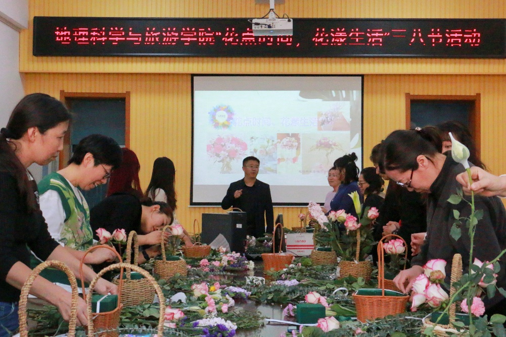在第114个“三八”国际妇女节到来之际,为了进一步丰富女性的精神文化生活,提高女性综合素养,加强女教师之间的沟通与交流。地理科学与旅游学院“花点时间,花漾生活”主题插花活动于3月1日下午在第六教学楼举行,学院全体女教职工参加了本次活动。学院党委冷传平书记出席活动,并向全体女教工致以节日的祝福,学院甘静老师为大家分享插花技巧。