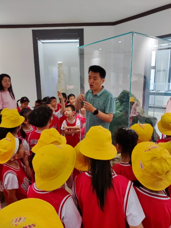 孩子们小心的摸了摸其中的岫岩玉,听了它背后蕴含的故事。孩子们用好奇的眼睛观察着每一块岩石,感受着大自然的神奇。