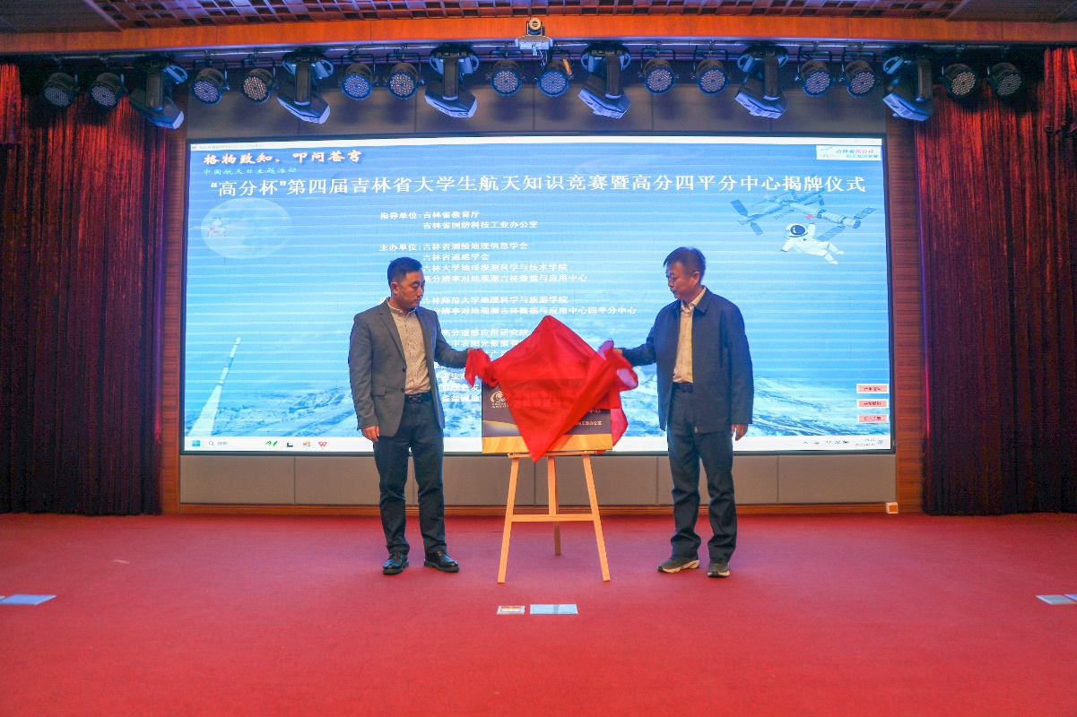 开幕式上,赵经武和贾涛共同为高分辨率对地观测系统吉林数据与应用中心四平分中心揭牌。